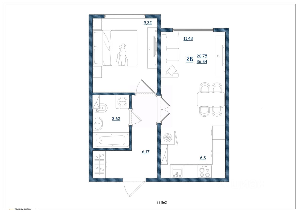 Общая площадь36,8 м²