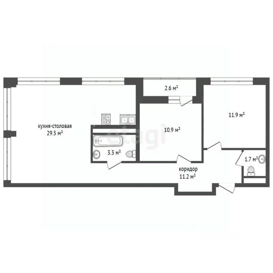 - Возможность перепланировки в трехкомнатную квартиру.