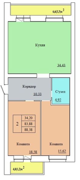 Общая площадь88,38 м²
