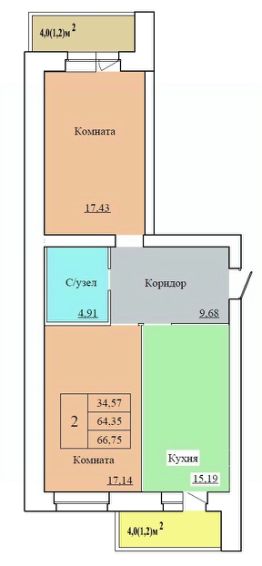 Продается 2-комн. квартира, 66,75 м²