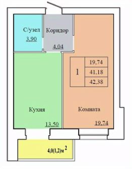 Общая площадь42,38 м²