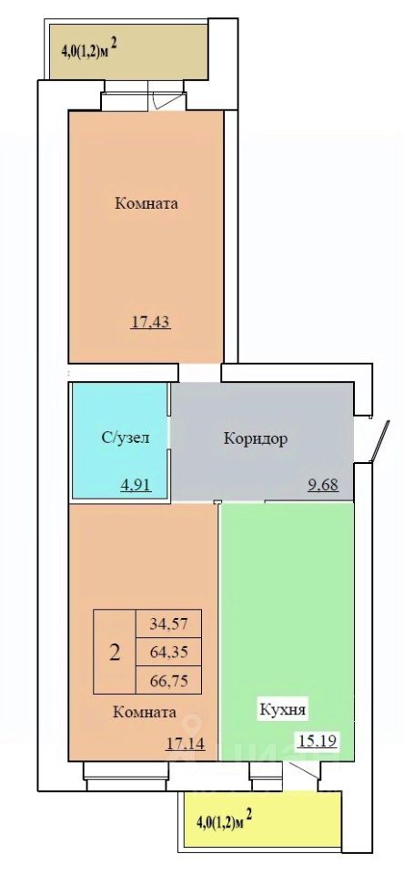 Общая площадь66,75 м²