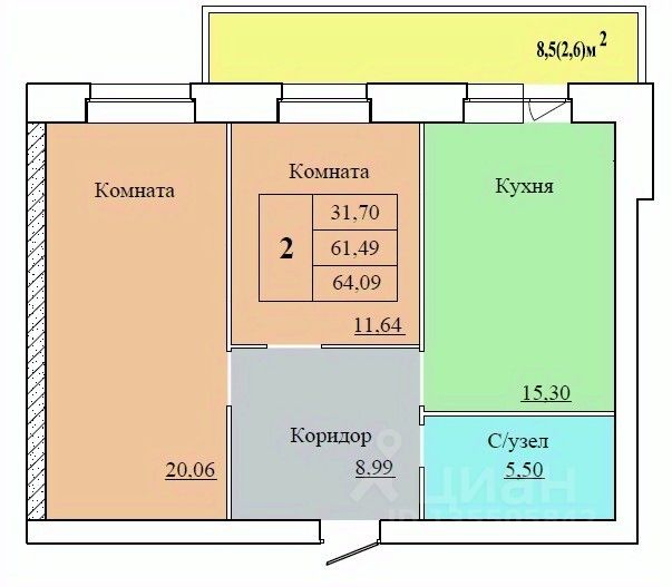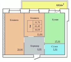 Общая площадь64,09 м²