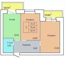 Общая площадь60,7 м²