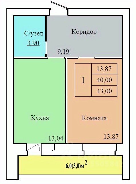 Общая площадь43 м²