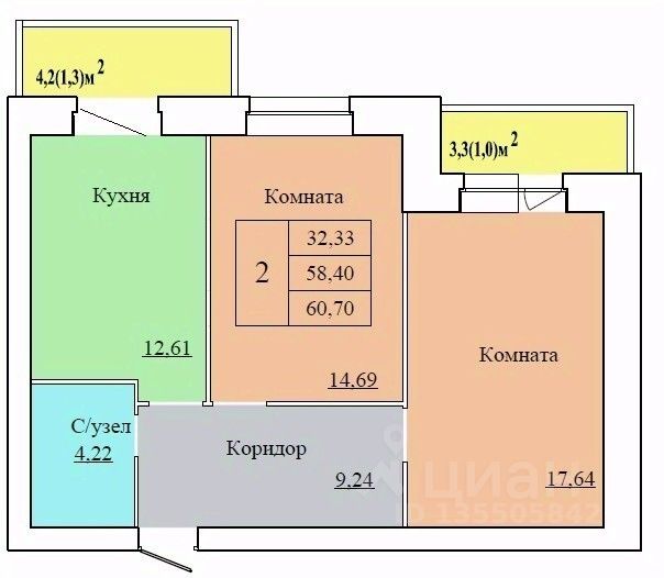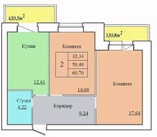 60,7 м²