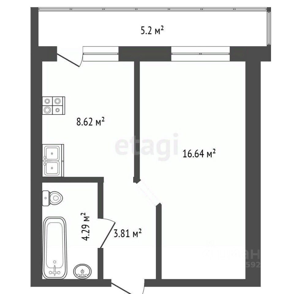 Общая площадь - 33,1 кв.м.(без учета лоджии)