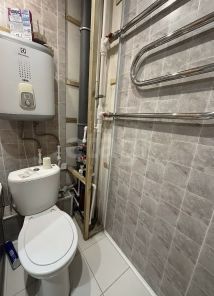 Санузел совмещенный - на полу кафель, стены панели.