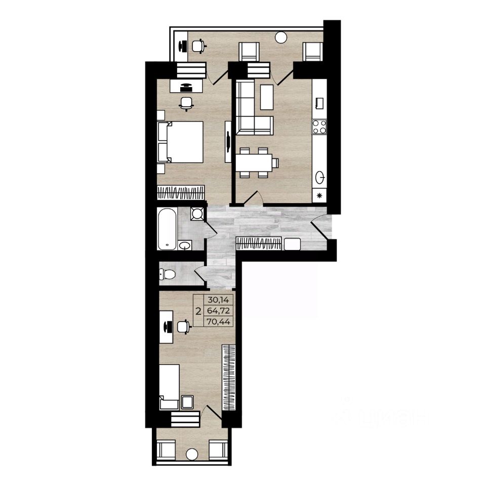 70,44 м²