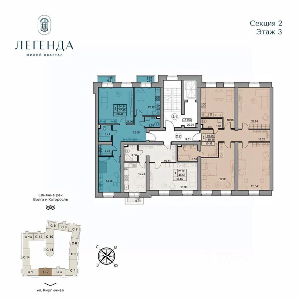 Жилой квартал Легенда - квартиры бизнес-класса в легендарной локации на месте слияния двух рек Волги и Которосли, в окружении объектов культурного наследия Юнеско Церковь Иоанна Златоуста и памятник 18 века. Проект граничит с природным парком на набережной, с которого открывается вдохновляющий вид на исторический центр города.