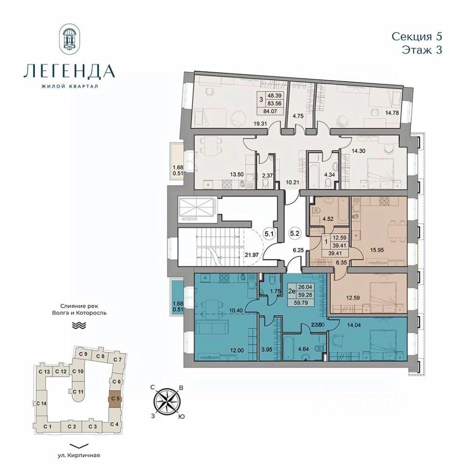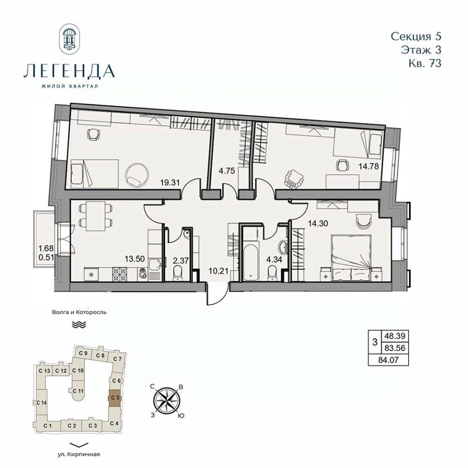 Продается светлая 3-комнатная квартира 84.07 кв.м. Этаж 3, подъезд 5.