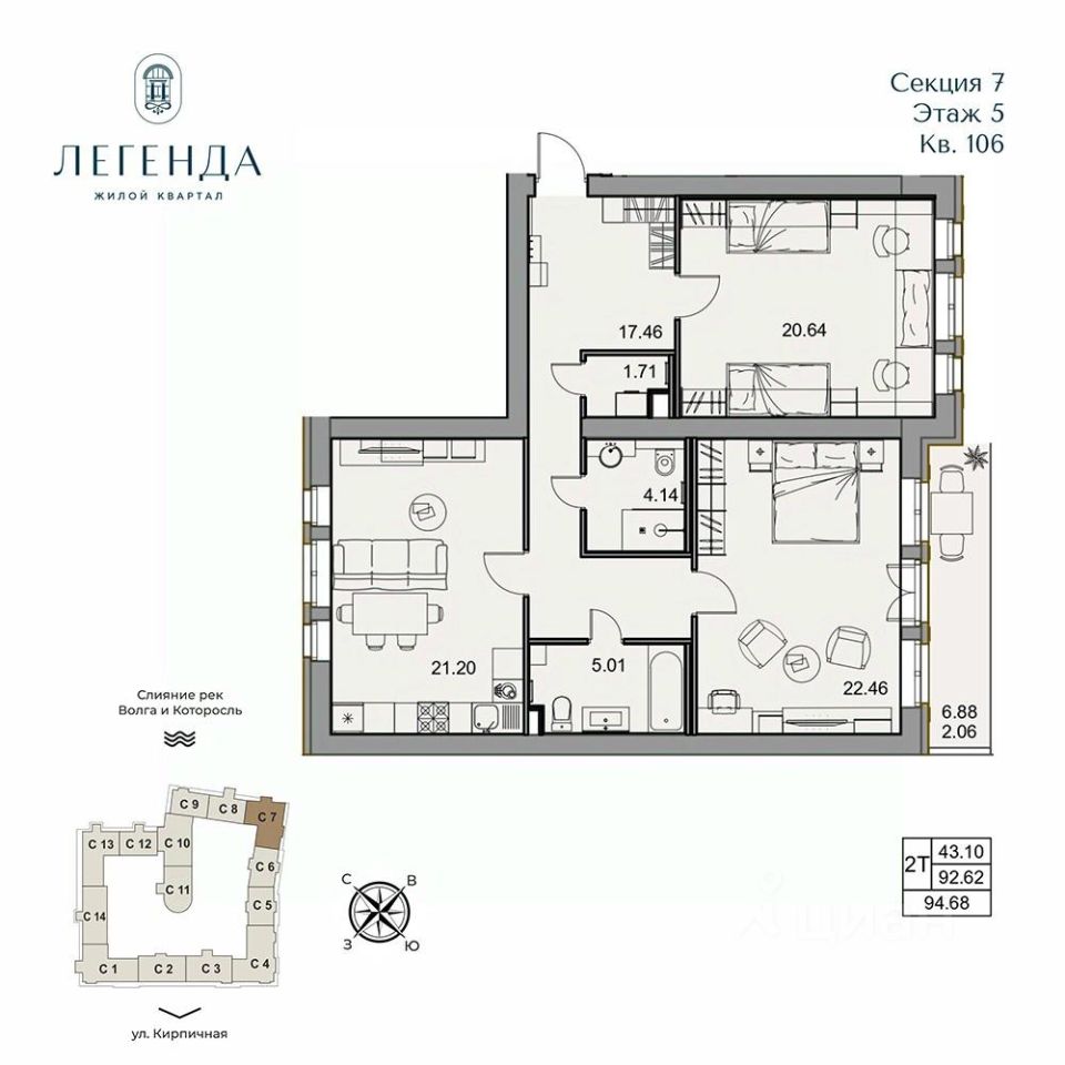 Жилой квартал Легенда - квартиры бизнес-класса в легендарной локации на месте слияния двух рек Волги и Которосли, в окружении объектов культурного наследия Юнеско Церковь Иоанна Златоуста и памятник 18 века. Проект граничит с природным парком на набережной, с которого открывается вдохновляющий вид на исторический центр города.