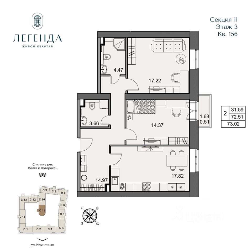 Жилой квартал Легенда - квартиры бизнес-класса в легендарной локации на месте слияния двух рек Волги и Которосли, в окружении объектов культурного наследия Юнеско Церковь Иоанна Златоуста и памятник 18 века. Проект граничит с природным парком на набережной, с которого открывается вдохновляющий вид на исторический центр города.