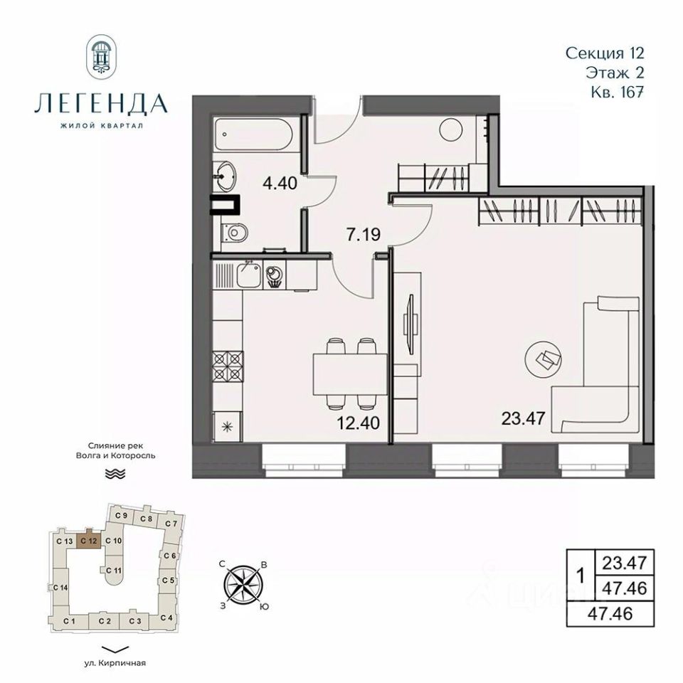 Жилой квартал Легенда - квартиры бизнес-класса в легендарной локации на месте слияния двух рек Волги и Которосли, в окружении объектов культурного наследия Юнеско Церковь Иоанна Златоуста и памятник 18 века. Проект граничит с природным парком на набережной, с которого открывается вдохновляющий вид на исторический центр города.