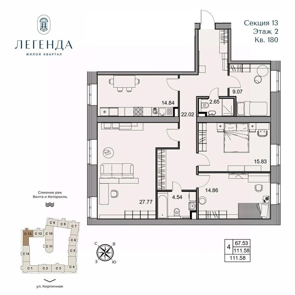 Жилой квартал Легенда - квартиры бизнес-класса в легендарной локации на месте слияния двух рек Волги и Которосли, в окружении объектов культурного наследия Юнеско Церковь Иоанна Златоуста и памятник 18 века. Проект граничит с природным парком на набережной, с которого открывается вдохновляющий вид на исторический центр города.