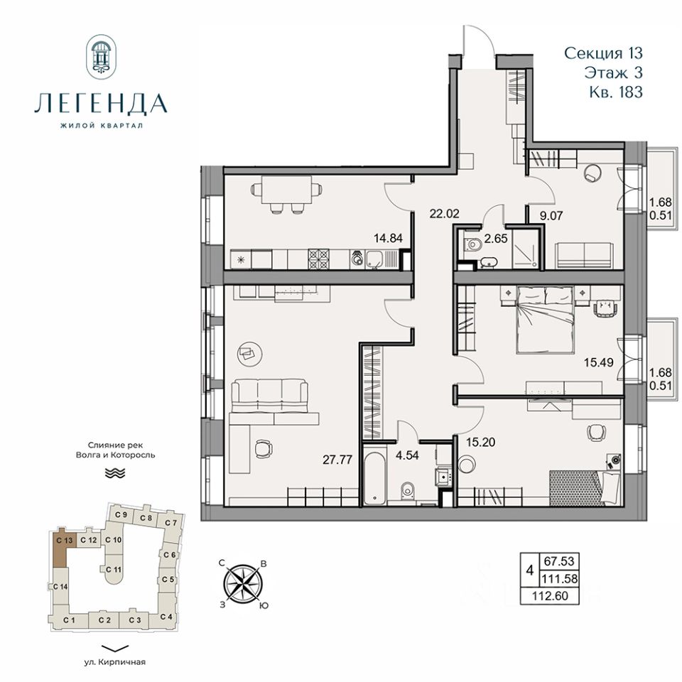 Жилой квартал Легенда - квартиры бизнес-класса в легендарной локации на месте слияния двух рек Волги и Которосли, в окружении объектов культурного наследия Юнеско Церковь Иоанна Златоуста и памятник 18 века. Проект граничит с природным парком на набережной, с которого открывается вдохновляющий вид на исторический центр города.