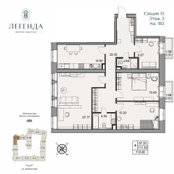 Продается светлая 4-комнатная квартира 112.6 кв.м. Этаж 3, подъезд 13.