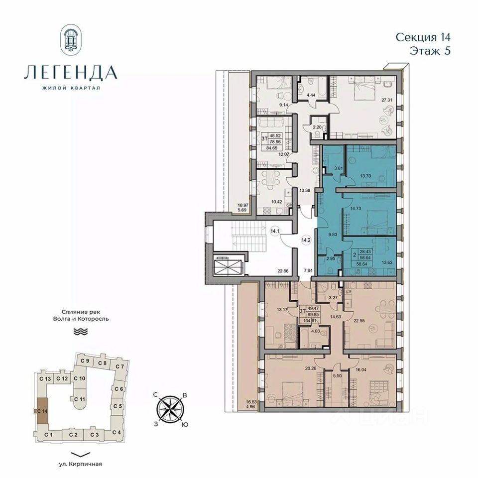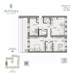 Продается светлая 3-комнатная квартира 104.81 кв.м. Этаж 5, подъезд 14.