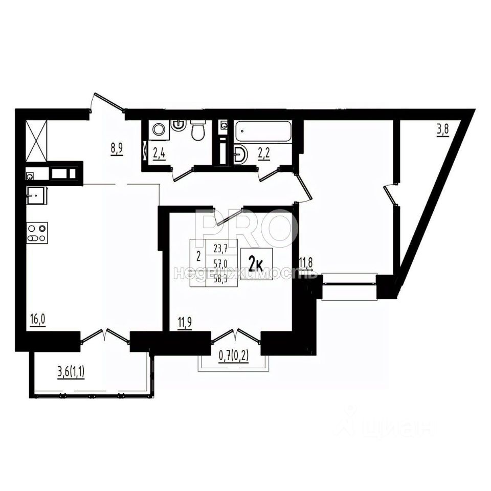 58,3 м²