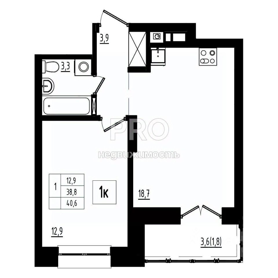 18,7 м²