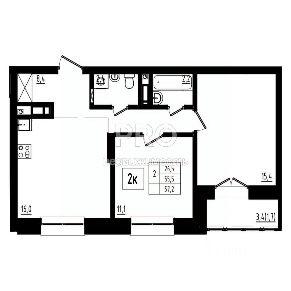 57,2 м²