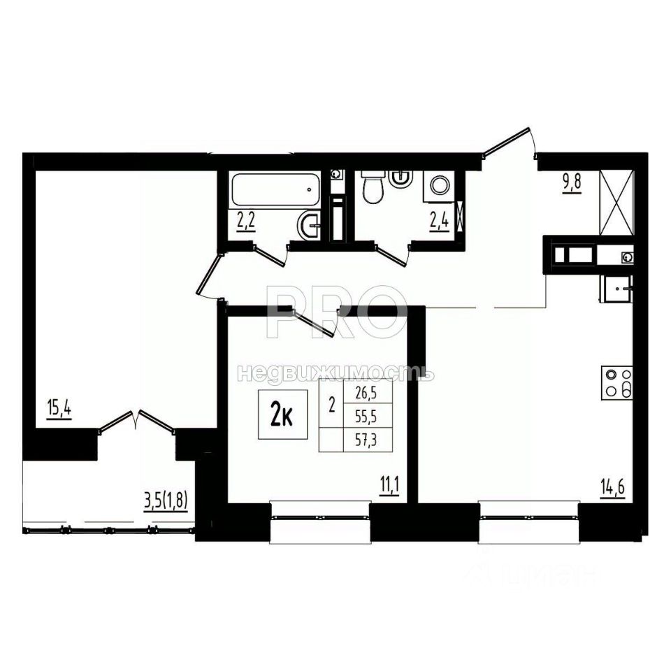 57,3 м²