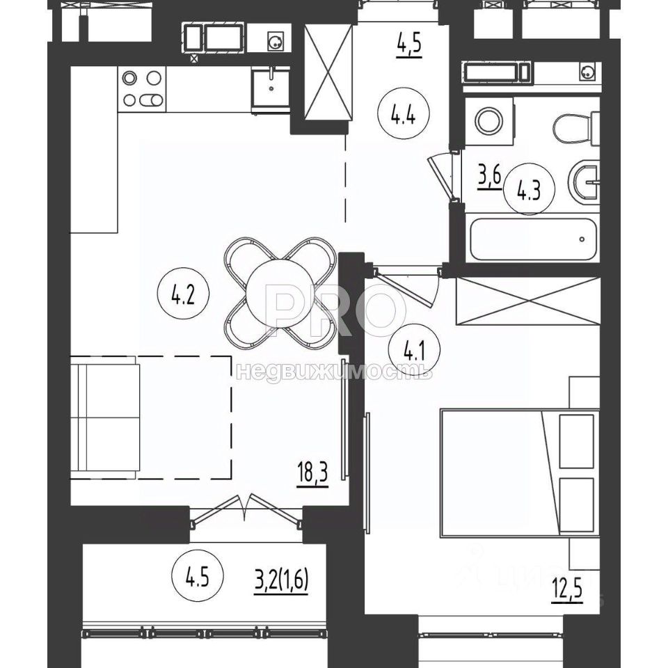 18,4 м²