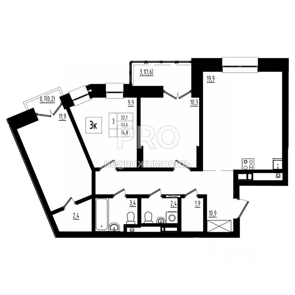 74,8 м²