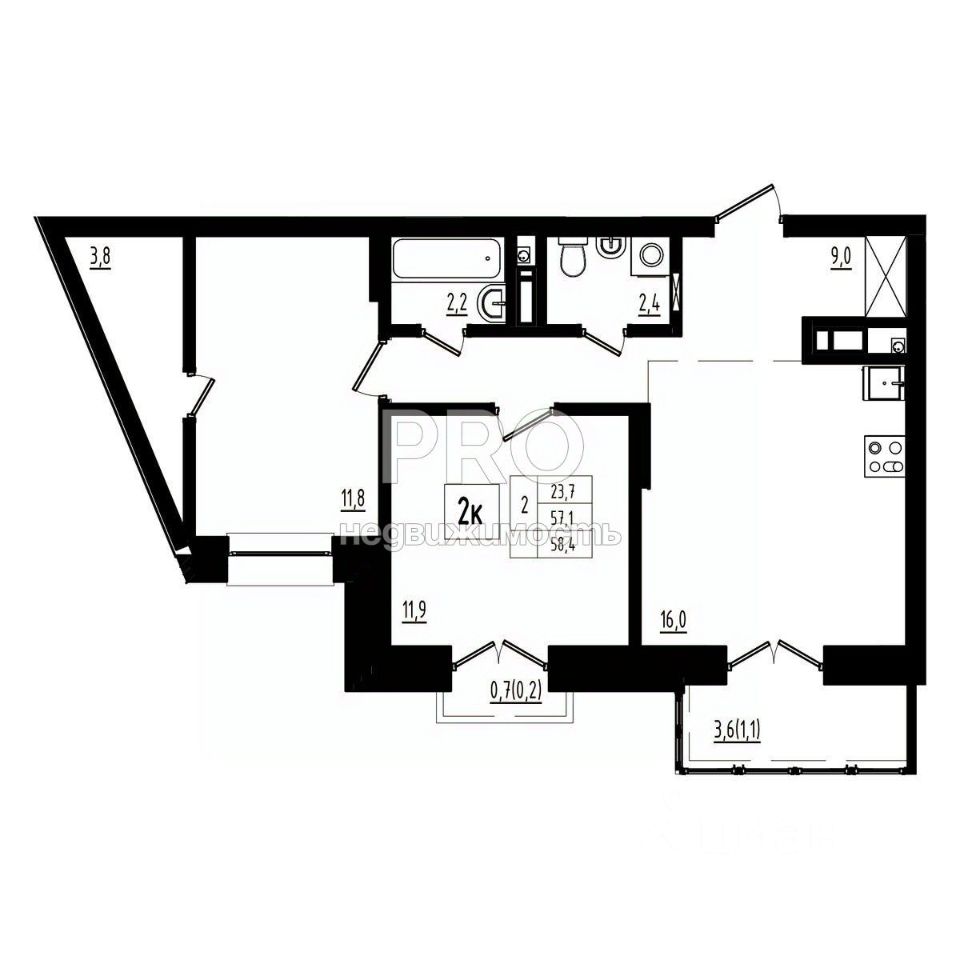 58,4 м²