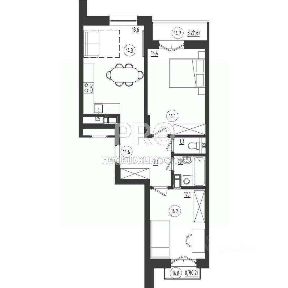 18,6 м²