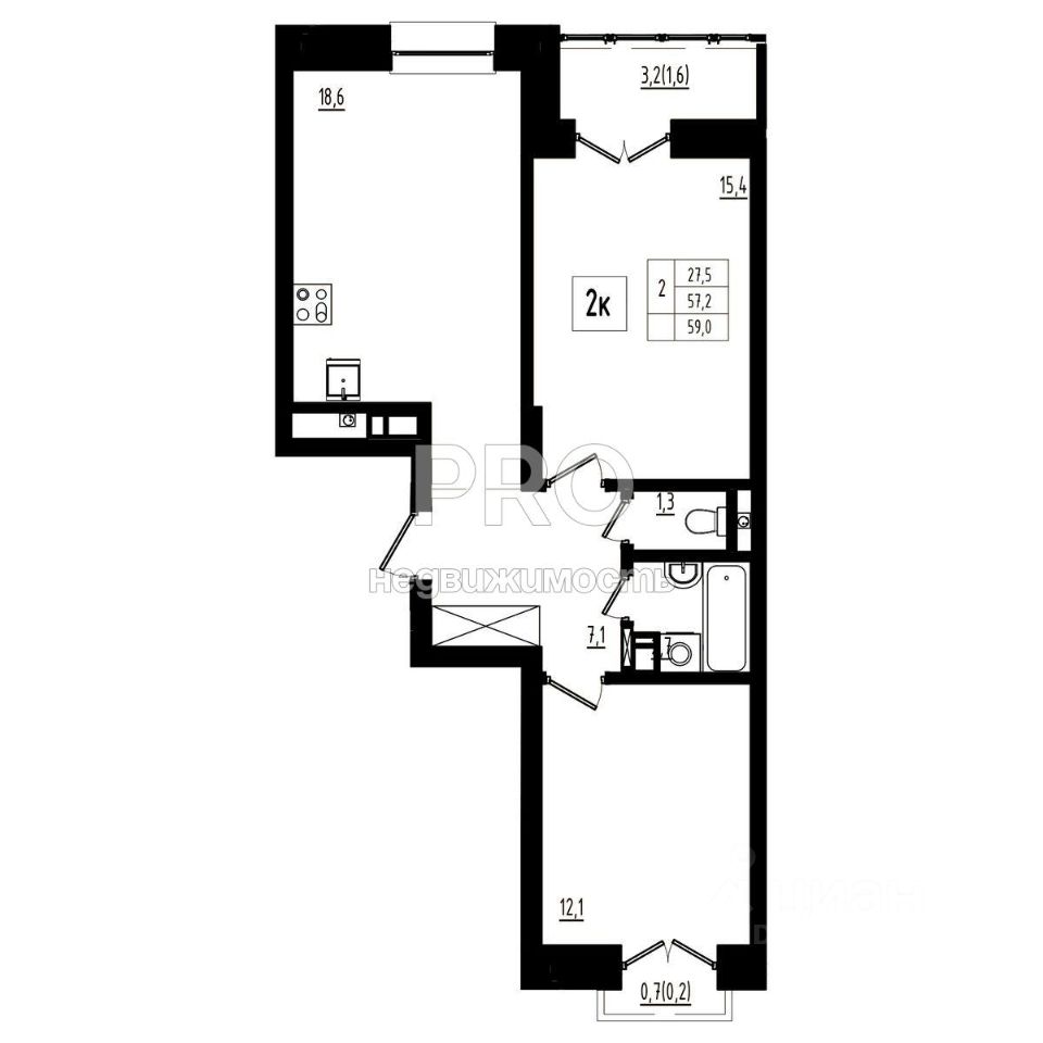 18,6 м²