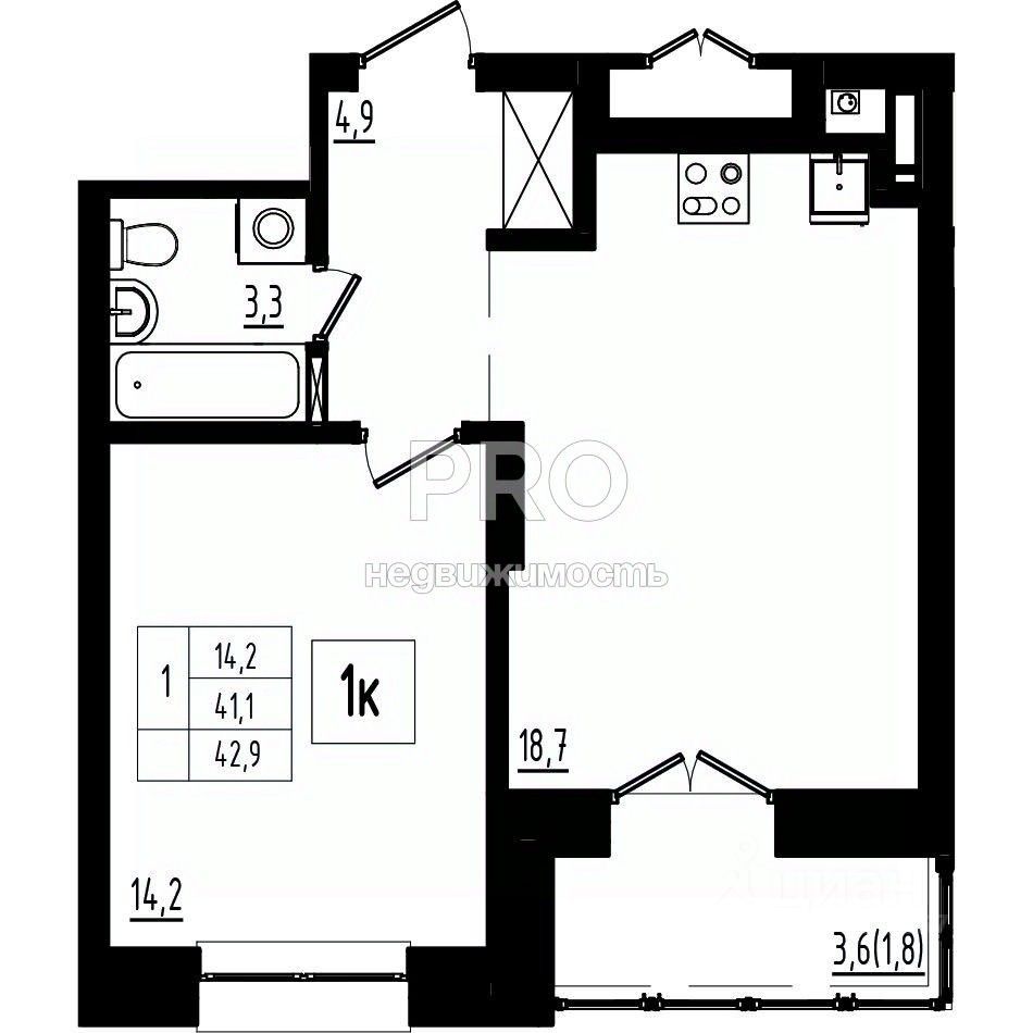 42,9 м²