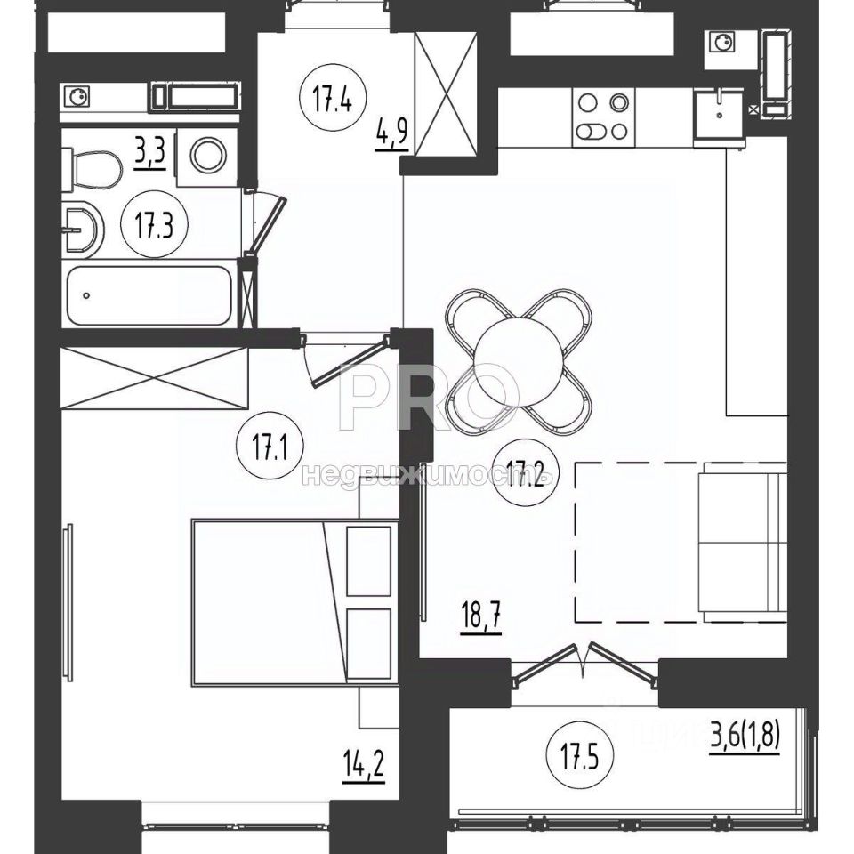 18,7 м²