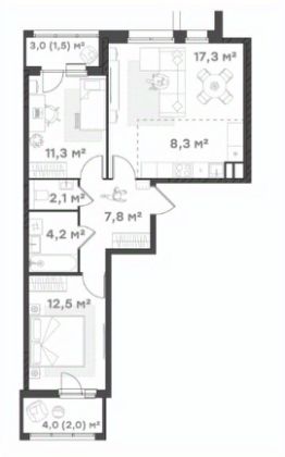 66,7 м²