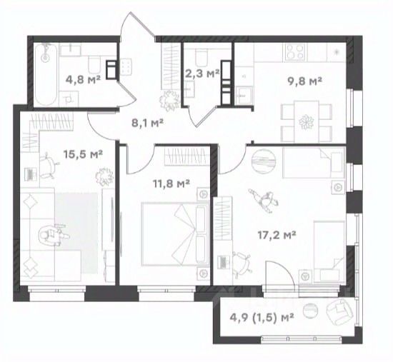 Площадь кухни9,8 м²