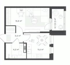 Жилая площадь15,8 м²