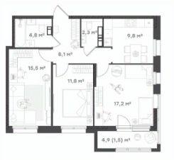 Площадь кухни9,8 м²