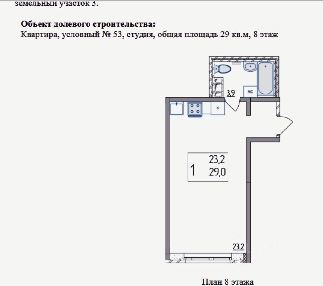 Продам квaртиpу-студию 29м2. с бюджетной отделкой.