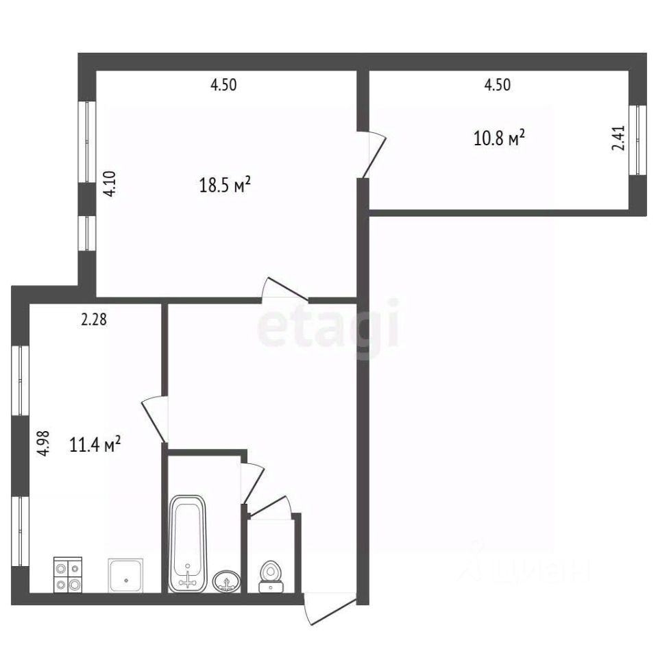 Общая площадь: 56,5 кв. м