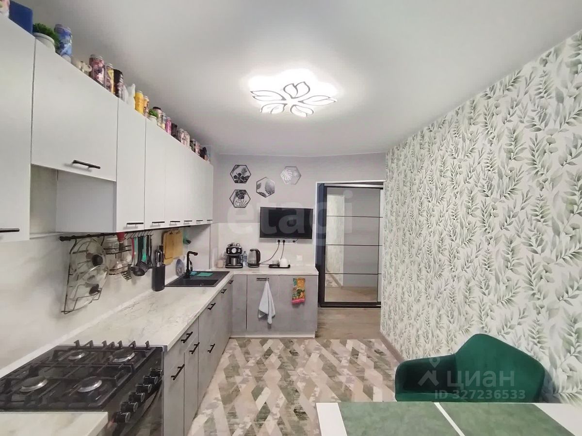 • Светлая кухня 10 м² с уже установленным гарнитуром и газовой плитой.