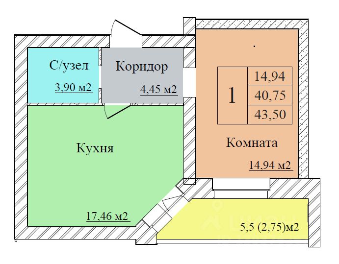 43,5 м²