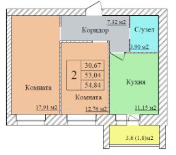 Общая площадь54,84 м²