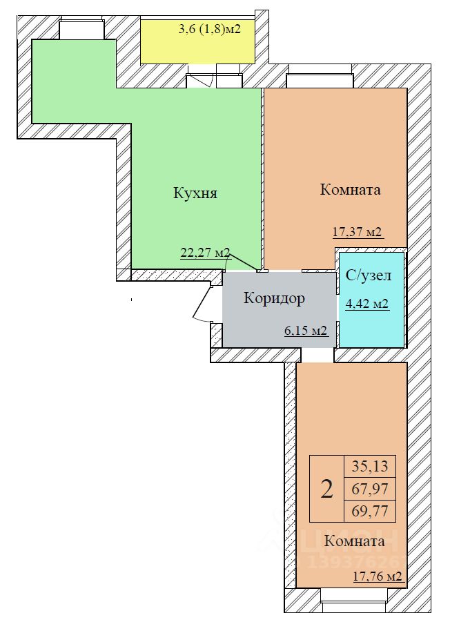 Общая площадь69,77 м²
