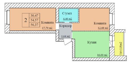 Общая площадь56,37 м²
