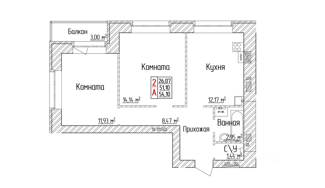 54,1 м²
