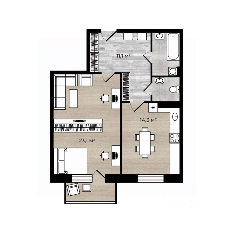 Жилая площадь: 23,1 м²