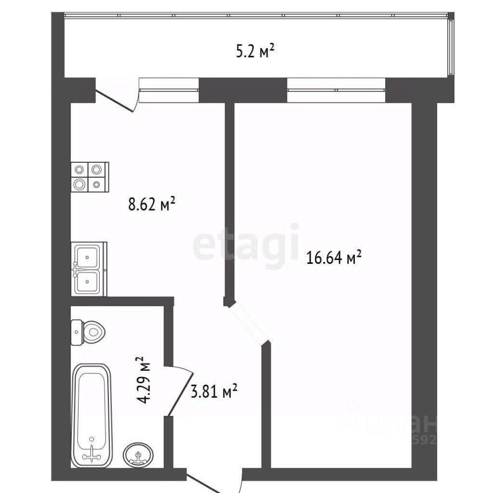 Общая площадь - 33,1 кв.м.(без учета лоджии)