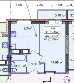 • Общая площадь: 31,6 м²