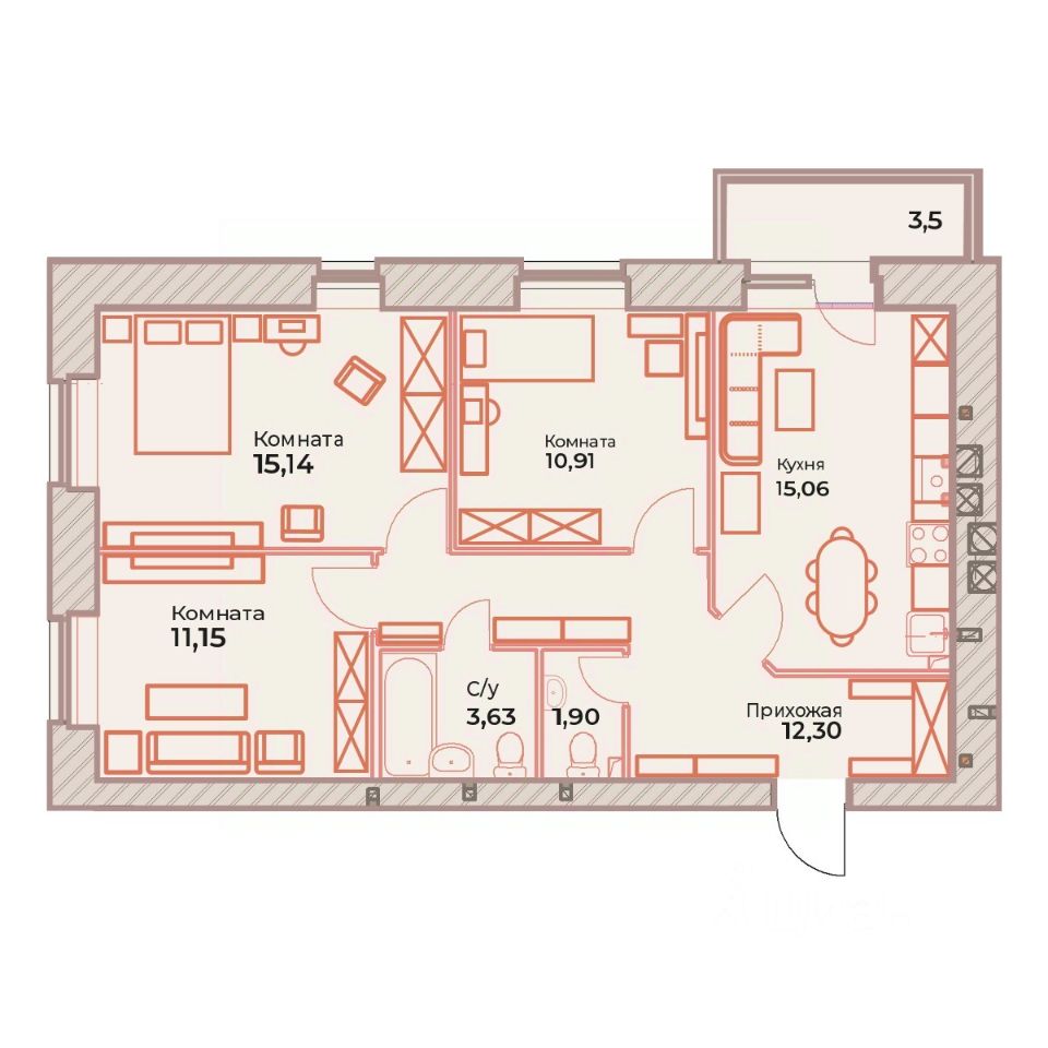 Продаётся 3-комнатная квартира в строящемся доме (дом 46), срок сдачи: II-кв. 2028, общей площадью 71.14 кв.м., на 1 этаже. ЖД "Атмосфера" - это: