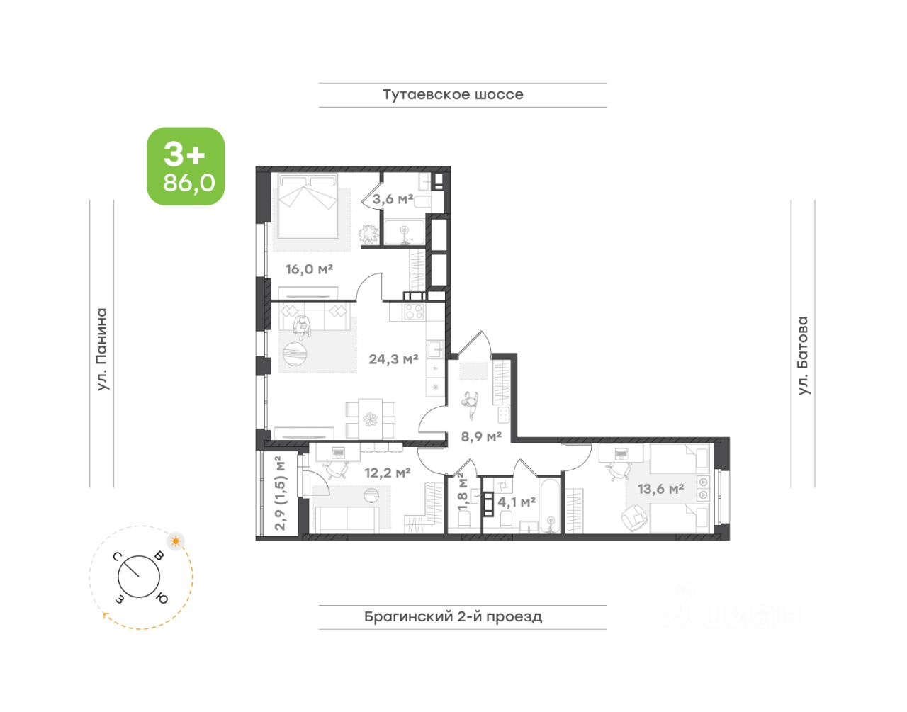 24,3 м²